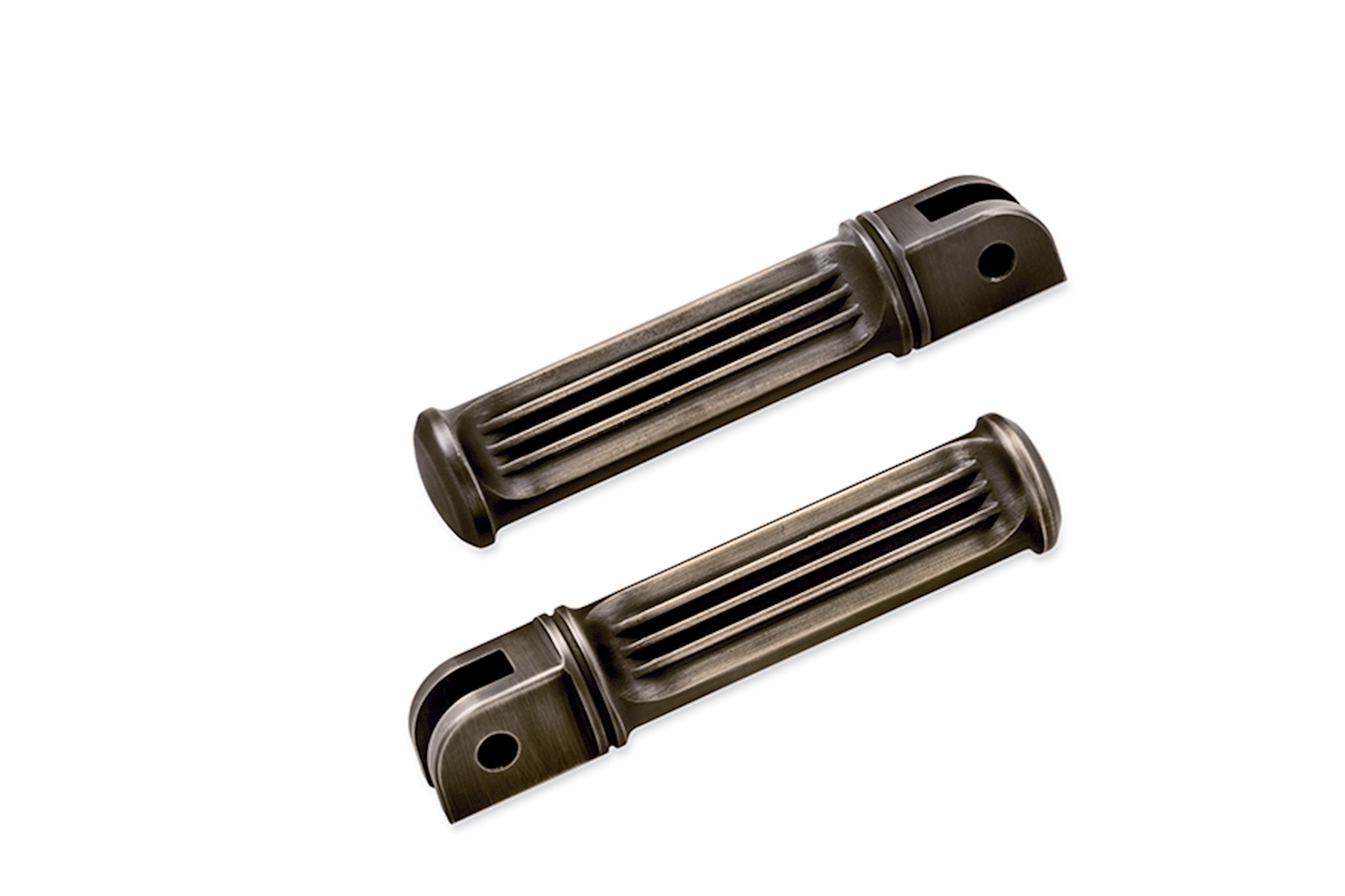 Shaped for correct foot position on specific models, these heavyweight solid brass footpegs feature three raised ribs and a mushroom end to keep your boot in place.